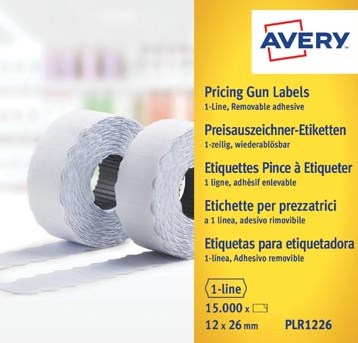 Avery PLR1226 etiketten voor prijstang afneembaar, ft 12 x 26 mm, 15 000 etiketten, wit