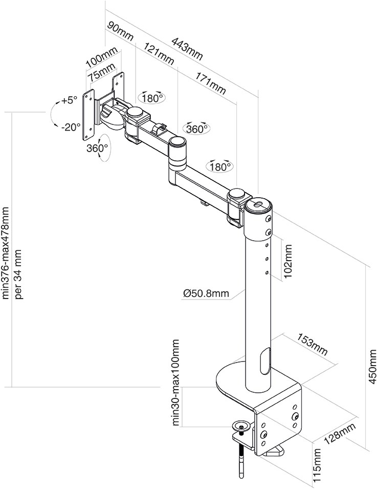 Monitor arm voor curved monitor 10-49 inch
