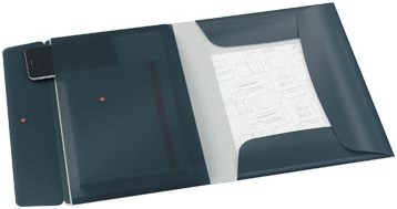 Leitz Cosy elastomap met 3 kleppen, met opbergvak met drukknoppsluiting, uit PP, ft A4, grijs