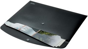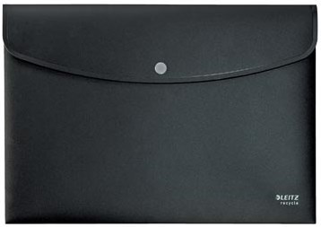 Voor ft A4 (23,5 x 31,3) Uit 80 % gerecycleerde PP Met drukknopsluiting Capaciteit: 60 vel Copysafe Kleur: zwart Certificaat Blauwe Engel
