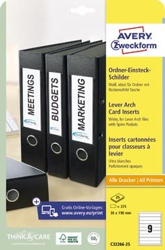 Zweck Printbare insteekkaarten voor ordnerrug ft 3 x 19 cm, rug van 4 cm, 225 stuks