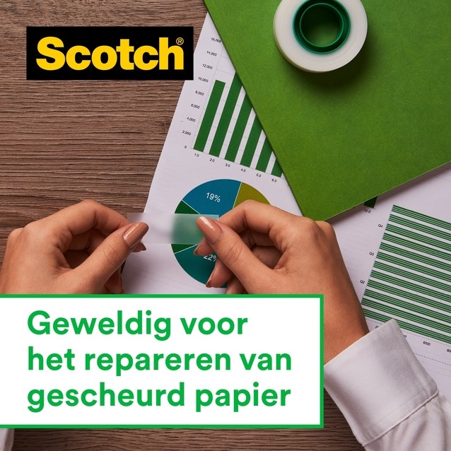 Geleverd met 1 rol Scotch® Magic Tape, ft 19 mm x 7,5 m.