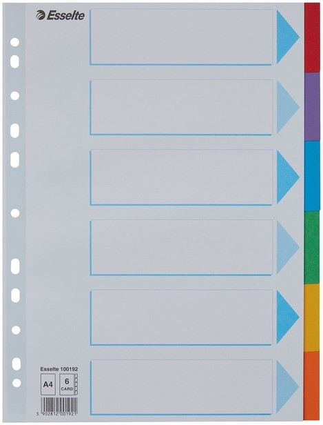 Tabbladen Esselte Standaard A4 10-delig karton 11-rings met voorblad assorti
