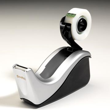 taperoller met vaste uitzwenkbare kern gevuld met 1 rol Scotch® Magic Tape, ft 19 mm x 33 m. Kleur: zilver/zwart.