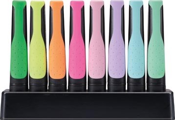 • De tekstmarkeerstift is er nu ook in 4 pastelkleuren!