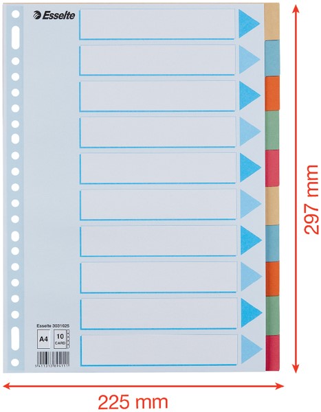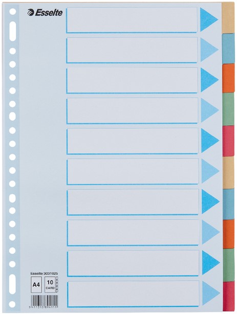 Tabbladen Esselte Standaard A4 10-delig karton 11-rings met voorblad assorti