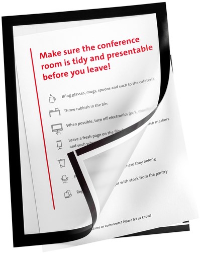 • Met het Infokader zelfklevend van Quantore A5 presenteer je documenten, mededelingen of kleine posters altijd netjes en professioneel. De zwarte rand geeft een strakke, moderne uitstraling en past perfect in kantoren, winkels of openbare ruimtes. Het magnetische zichtframe is zowel staand als liggend te gebruiken en biedt veel flexibiliteit bij het tonen van informatie. Dankzij de zelfklevende achterzijde kleeft het stevig op alle vlakke oppervlakken en kun je het eenvoudig herpositioneren zonder lijmresten achter te laten. Verpakt per 2 stuks, ideaal om meerdere plekken direct van duidelijke communicatie te voorzien. kenmerken: