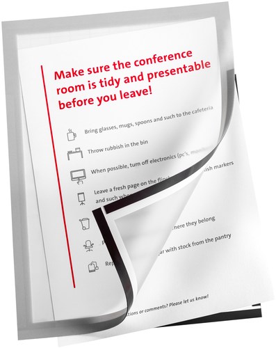 • Met het Infokader zelfklevend van Quantore A4 presenteer je documenten, posters of mededelingen altijd netjes en professioneel. De zilveren rand geeft je presentatie een strakke en moderne uitstraling, ideaal voor kantoren, winkels of openbare ruimtes. Het magnetische zichtframe is zowel staand als liggend te gebruiken en biedt flexibiliteit in je communicatie. Dankzij de zelfklevende achterzijde kleeft het stevig op alle vlakke oppervlakken en is het eenvoudig herpositioneerbaar zonder lijmresten. Verpakt per 2 stuks, zodat je direct meerdere plekken van duidelijke communicatie voorziet. kenmerken: