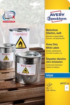 Avery weerbestendige etiketten ft 210 x 297 mm (b x h), 10 stuks, 1 per vel