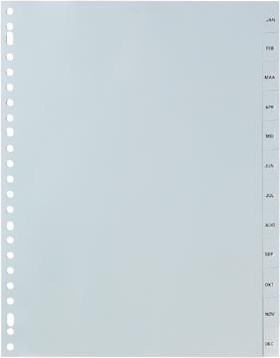 Pergamy tabbladen, ft A4, 23-gaatsperforatie, grijze PP, januari-december