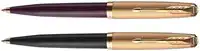 De balpen van Parker 51 in luxe pruimkleur met een gouden afwerking heeft een gestroomlijnde vorm en een iconische bedekte penpunt met 18k puur goud.