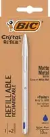 Balpen Bic Cristal Re-new medium blauw blister à 1 balpen + 2 vullingen