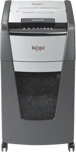 Automatische papierversnipperaar die automatisch tot 225 A4 vellen (80 gsm) tegelijkertijd versnipperd. Deze auto feed papiervernietiger versnippert veilig tot veiligheidsniveau P5 in kleine snippers van 2x15mm. De grote opvangbak van 60 liter is uit te nemen en gemakkelijk te legen. Het is niet nodig om papier handmatig in te voeren, of eerst nietjes en paper clips te verwijderen. De rexel Optimum Auto+ 225M doet al dit werk voor jou.