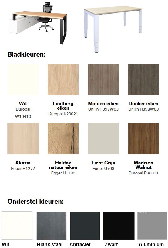 Framekleuren: blank staal, wit, zwart, aluminium of antraciet