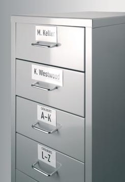 Zelfklevende hoes van transparante zachte folie met bedrukbare blanco insteekkaartjes. Voor het beschrijven van ordners, mappen, opbergbakjes, kaartenbakken, shop-in-shop rekken, deuren, planken, enz. Zakje van 10 stuks.