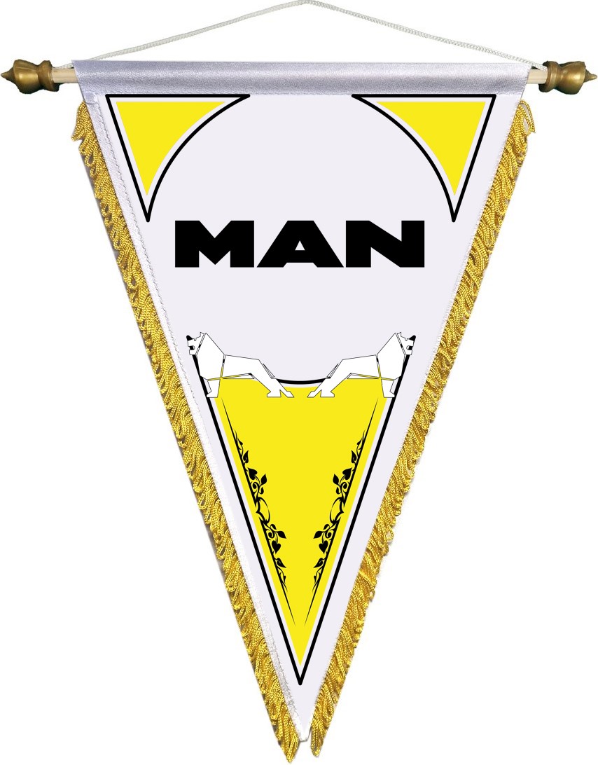 Puntvaantje MAN. Beide zijden transferdruk met gele roezel.