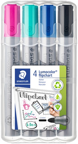 Viltstift Staedtler 356 voor flipover rond 2mm set à 4 stuks assorti