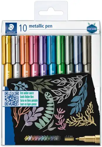 • Metallic pen om te schrijven en decoreren op licht en donker papier evenals op kaartjes.