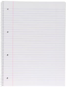 A4 spiraalblok met lijntjes, 4 gaats perforatie en rode kantlijn