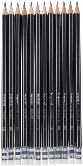 Accessoires Grafietpotlood Bruynzeel Teens HB met gum set à 12 stuks grijs