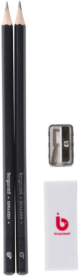 Stel een vraag over Grafietpotlood Bruynzeel Teens HB met puntenslijper en gum set à 4 delen