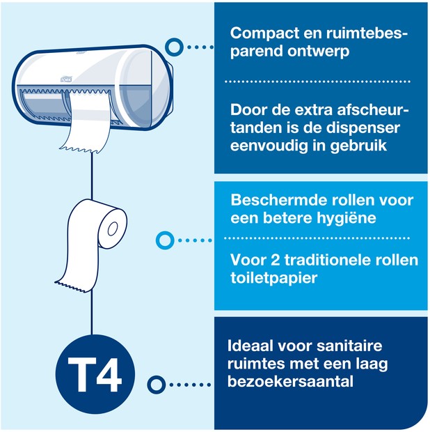 Stel een vraag over Toiletpapier Tork T4 Premium 3-laags 250 vel wit 110316