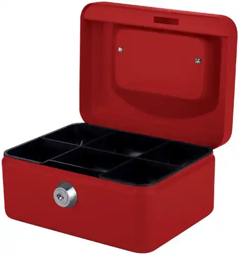• De geldkist Quantore 150x115x80mm rood is een compacte en betrouwbare oplossing voor het veilig bewaren van contant geld en kleine waardevolle spullen. Deze stevige metalen kist is uitgerust met een veiligheidscilinderslot en wordt geleverd met twee sleutels voor extra zekerheid. Het deksel beschikt over een verzonken, verchroomde handgreep voor een nette afwerking en eenvoudig transport. Binnenin vind je een praktisch kunststof muntenbakje om je kleingeld overzichtelijk te ordenen. Ideaal voor gebruik op kantoor, bij evenementen of in winkels. Kenmerken:
