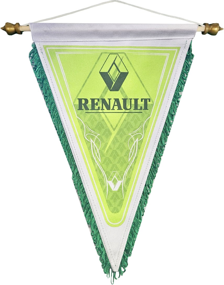 Puntvaantje Renault. Beide zijden transferdruk met groene roezel.