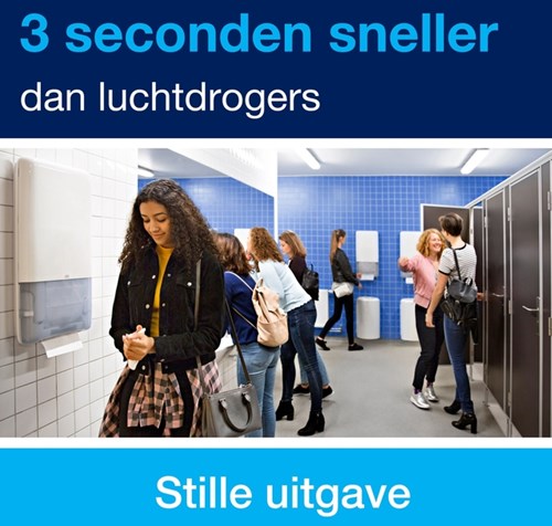 Tork PeakServe® Continu™ Papieren Handdoeken, ontworpen voor toiletruimten waar hoge bezoekersaantallen een uitdaging vormen. De gevouwen handdoeken van Tork PeakServe® Continu™ helpen je deze én andere problemen te voorkomen. Met 250% meer handdoeken per dispenser hoeft je personeel geen onnodige checks uit te voeren, waardoor er meer tijd overblijft voor de schoonmaak. Het gepatenteerde Continu™ systeem geeft altijd één handdoek uit binnen 3 seconden, waardoor afval en wachtrijen worden verminderd.