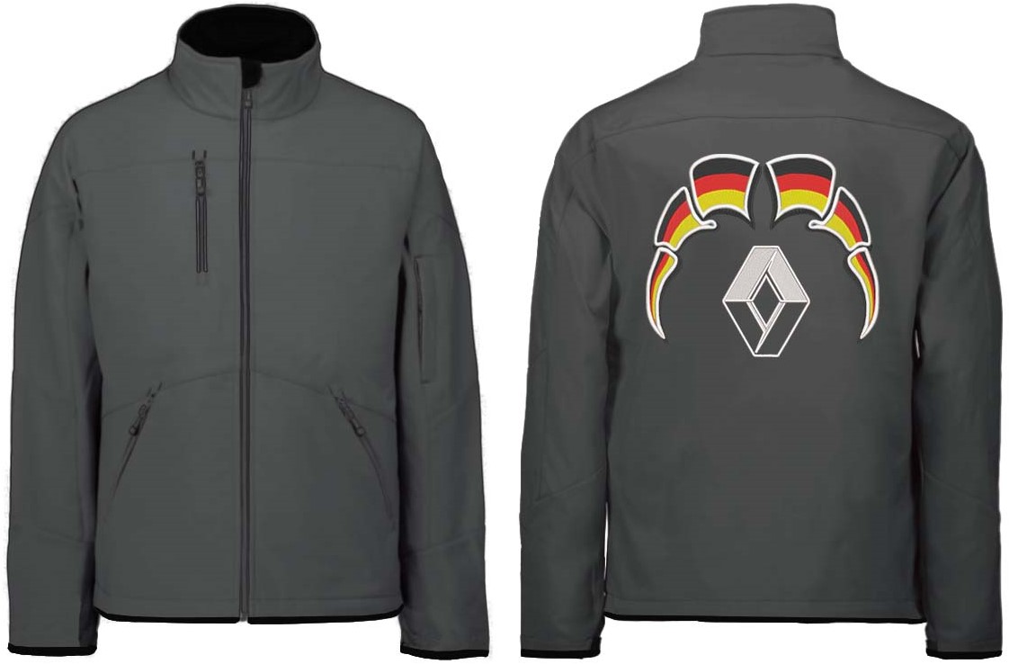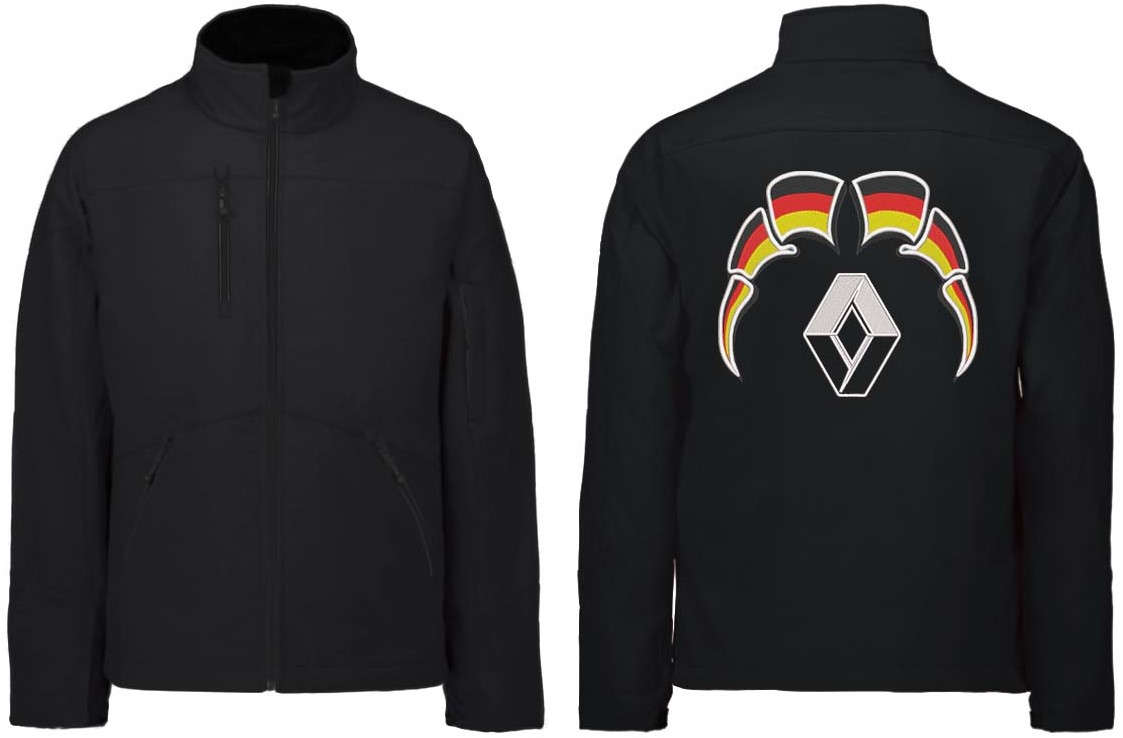 Als extra optie met meerpijs is eenzelfde logo als achter, maar dan op de linkerborst.