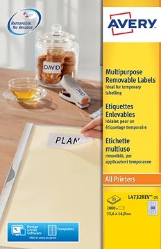 AVERY afneembare witte etiketten Stick & Lift ft 35,6 x 16,9 mm, 2.000 stuks, 80 per blad
