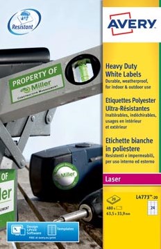 AVERY weerbestendige etiketten ft 63,5 x 33,9 mm, 480 stuks, 24 per blad