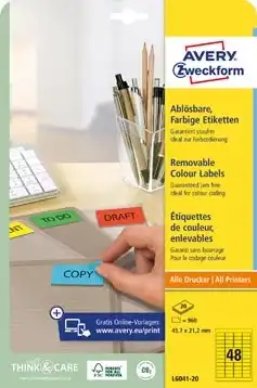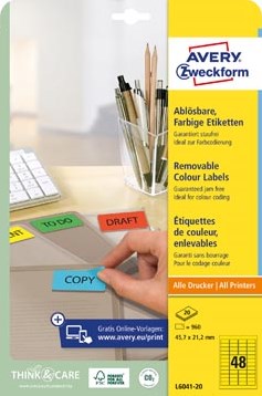 Avery etiketten L6041-20 21,2x45,7mm geel pak van 20 vel