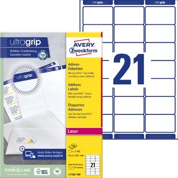 Avery etiketten L7160 63,5 x 38,1mm doos 100 vel