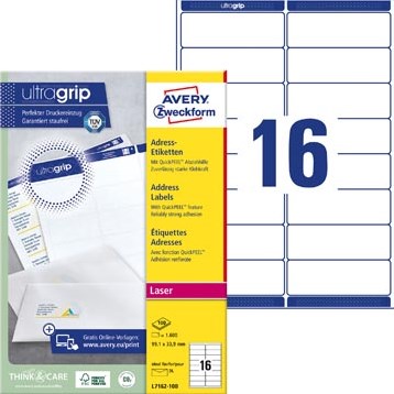 Avery etiketten 99,1 x 33,9mm 16 etiketten per vel