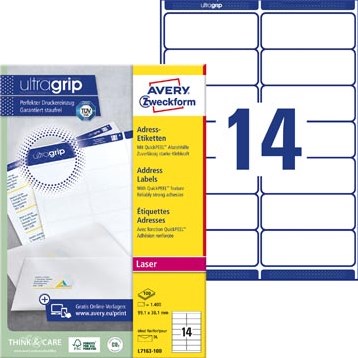 AVERY etiketten L7163 99,1 x 38,1mm 14 etiketten per vel wit doos van 250