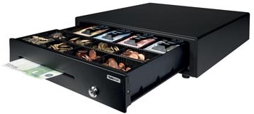 Ideaal voor gebruik in retail, horeca, scholen, enz. Open de kassalade door eenvoudig de sleutel om te draaien, of sluit hem aan een RJ12 bonprinter of kassasysteem aan voor automatisch openen. Ideale lay-out voor Euro, een verwijderbaar en aanpasbaar compartiment voor 8 muntsoorten. Inclusief afroomgleuf voor het bewaren van bankbiljetten met hoge waarde en waardepapieren.