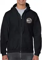 Fleece vest met gedrukte tekst en afbeeldingen.