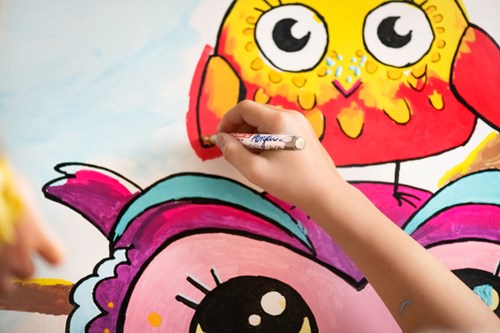 De hoogwaardige gepigmenteerde acrylverf op waterbasis dekt goed, is lichtecht, geurloos en permanent wanneer de verf droog is.