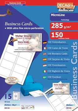 Decadry visitekaarten MicroLine ft 85 x 54 mm, 285 g/m², 150 kaartjes