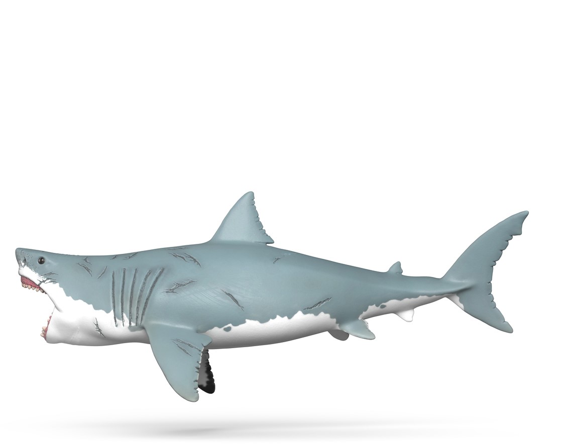 De Megalodon met zijn grijze huid vol littekens is een echte pre-historische reus. Ondanks zijn gigantische lengte van zo'n 17 meter en gewicht tot 60 ton zwemt hij razendsnel door de zee – altijd op jacht. Geen wonder: vanwege zijn omvang heeft hij altijd honger en moet hij veel eten. Bedreigend trekt hij zijn grote bek open en toont zijn scherpe haaientanden. Als hij je eenmaal te pakken heeft, is er geen ontsnapping meer mogelijk!