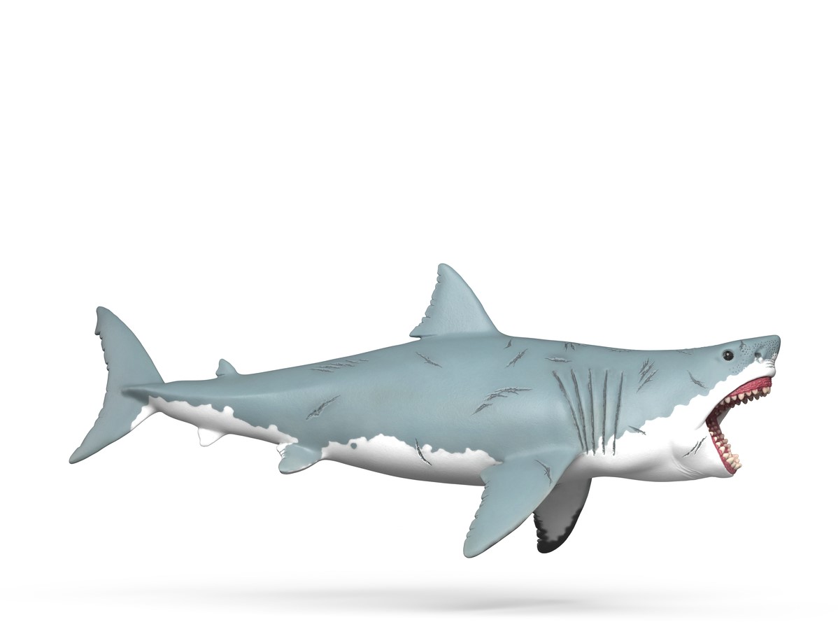 Als de gigantische megalodon uit het water komt, geldt maar één ding: Red jezelf als je kunt! Met zijn bijna 17 meter is deze haai uit de pre-historie is echt reusachtig. Zijn grijze huid is bezaaid met littekens van alle gevechten die hij heeft gewonnen. Vooral angstaanjagend is zijn bek met verschillende rijen scherpe tanden.