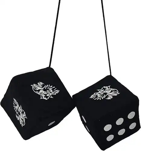 Dobbelstenen van Alcantara stof met gestikt Scania Svempa logo.
