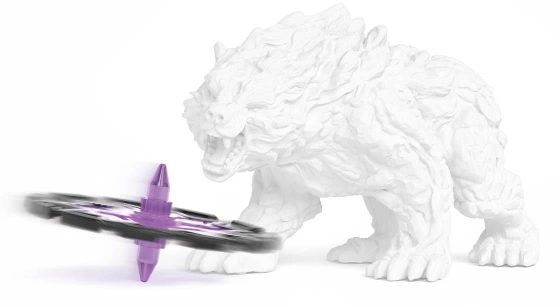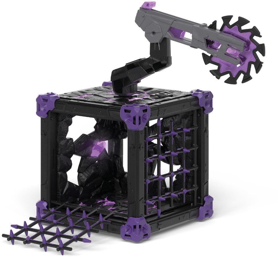 Help! Zo dichtbij de BattleCave komen, was geen goed idee! Het wordt bewaakt door de gemene schaduwtijger, die geen gevoel voor humor heeft. Hij moet namelijk het wereldkristal bewaken. Daarvoor heeft hij de BattleCave omgebouwd tot een gevaarlijke vesting. Hier ligt een valdeur te wachten en hij kan aanvallers gevangen houden achter de tralies. Als je zo ver komt! Want op het dak staat een reusachtige cirkelzaag die ook nog kan worden afgevuurd. Snel weg hier! De ELDRADOR® CREATURES BattleCaves veranderen elke kinderkamer in een actiezone! Wie gaat de adembenemende strijd aan? Alle BattleCaves kunnen worden gecombineerd. Zo liggen gemene valkuilen op de loer voor aanvallers. In de BattleCave Arena ontmoeten ze elkaar voor een duel. Wat een gevecht!