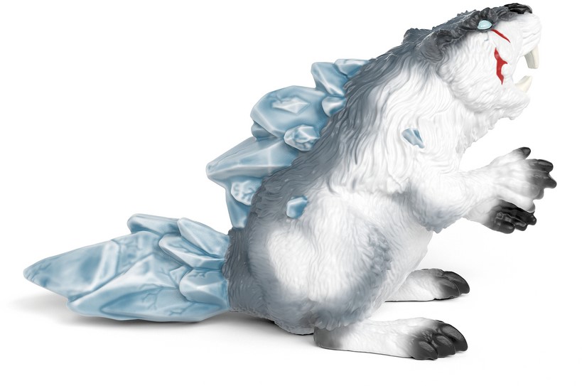 Wat een ongezellige tijdgenoot! De ijsbever heeft meestal een slecht humeur en is heel prikkelbaar. Dat hij vaak ruzie heeft, is hem aan te zien: zijn hele gezicht zit vol met diepe littekens. Zo ziet hij er nog gevaarlijker uit dan hij al is. Met zijn ijskoude ogen kijkt hij naar zijn tegenstander en toont dreigend zijn krachtige tanden. Hij wordt zelf beschermd door een dik ijspantser op zijn rug en heeft een beverstaart van ijsschubben. Deze bewoner van ELDRADORs® kun je maar beter uit de weg gaan!