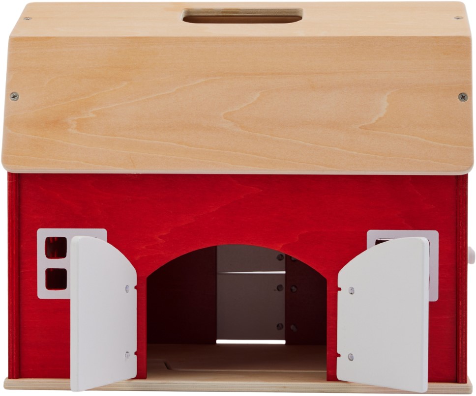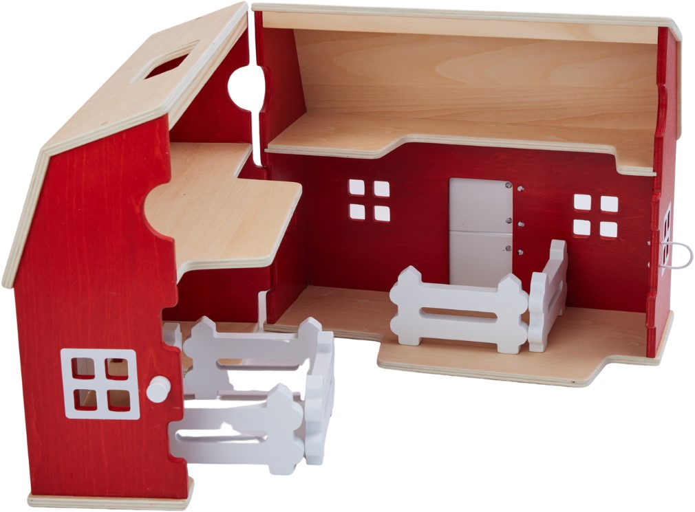 Wie zijn blik over de velden laat gaan, hoeft niet lang naar de boerderij te zoeken. De felrode boerderij met zijn grote schuurpoort en hoge dak springt meteen in het oog. De muren van het houten gebouw zijn rood geschilderd, de raamkozijnen en deurlatten wit. Het ziet er zo uitnodigend uit dat je meteen wilt langsgaan. Een blik in het interieur laat zien: Op de zolder is veel ruimte voor hooi en stro. In de stal liggen de witte hekelementen opgeslagen. Je hoeft ze alleen nog maar op te zetten om een sappige weide af te zetten. Alles klaar voor de verhuizing! Wanneer komen de dieren?