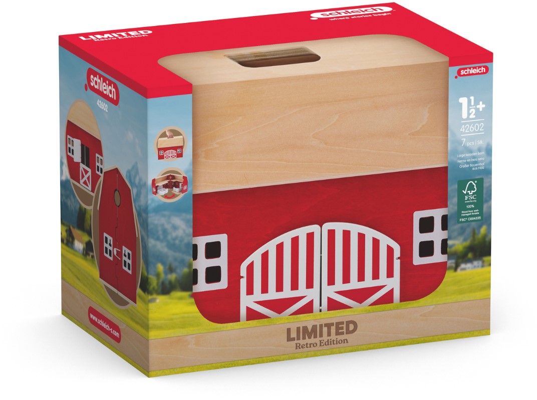 De grote boerderij van schleich® is gemaakt van hout en kan aan de zijkant worden open- en dichtgeklapt. Zo is de ruime stal met de hooizolder goed toegankelijk en kan het speelplezier beginnen. In het dak zit een handige draaggreep, zodat je de boerderij overal mee naartoe kunt nemen. De houten boerderij is geschikt voor kinderen vanaf 1 ½ jaar.