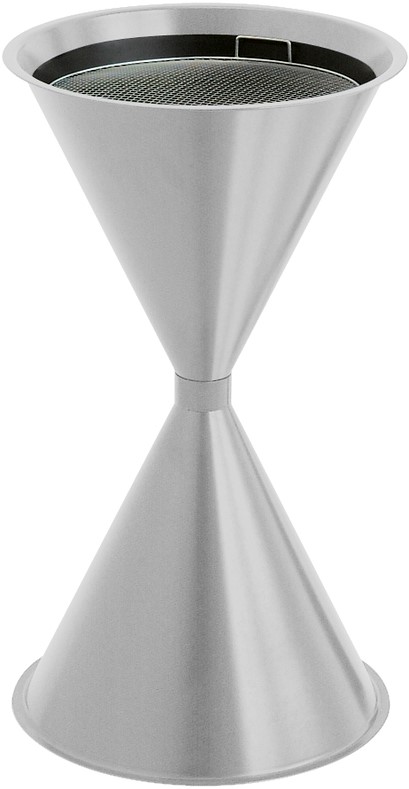 Metalen zandasbak met aluminium inzetschaal met daarin een gepoedercoat stalen zeef met kunststof beschermprofiel.