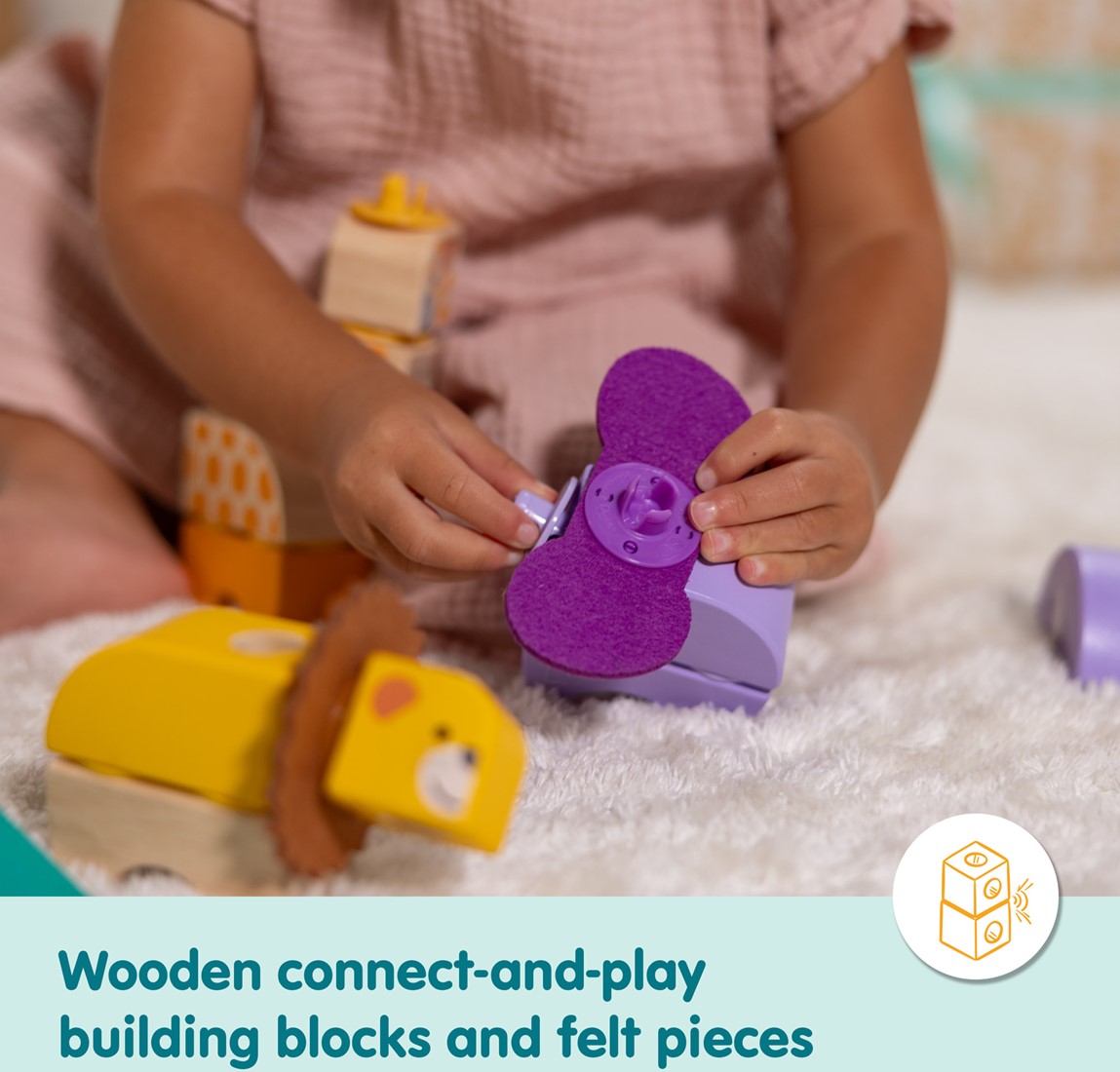 Van een stoere leeuw met vilten manen tot een elegante giraffe, een vrolijke zebra of een knorrige krokodil – alles is mogelijk. De grote verbindingsstukken klikken eenvoudig in en uit elkaar, waardoor bouwen veilig, intuïtief én eindeloos herhaalbaar wordt. En dankzij het open einde van het spel kunnen kinderen hun eigen dieren en fantasiefiguren bedenken, keer op keer.