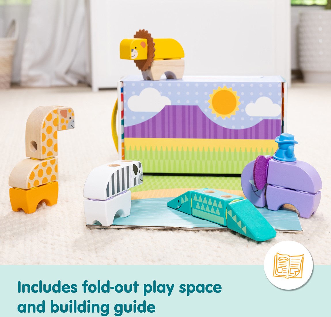 De Melissa & Doug Blockables Safarispeelset combineert creatief bouwen met verhalen vertellen en laat kinderen vanaf 2 jaar spelenderwijs hun eigen kleurrijke safariwereld tot leven brengen. Met robuuste, massief houten blokken en slimme klikverbindingen kunnen zelfs de kleinste handjes moeiteloos dieren bouwen, combineren en transformeren.